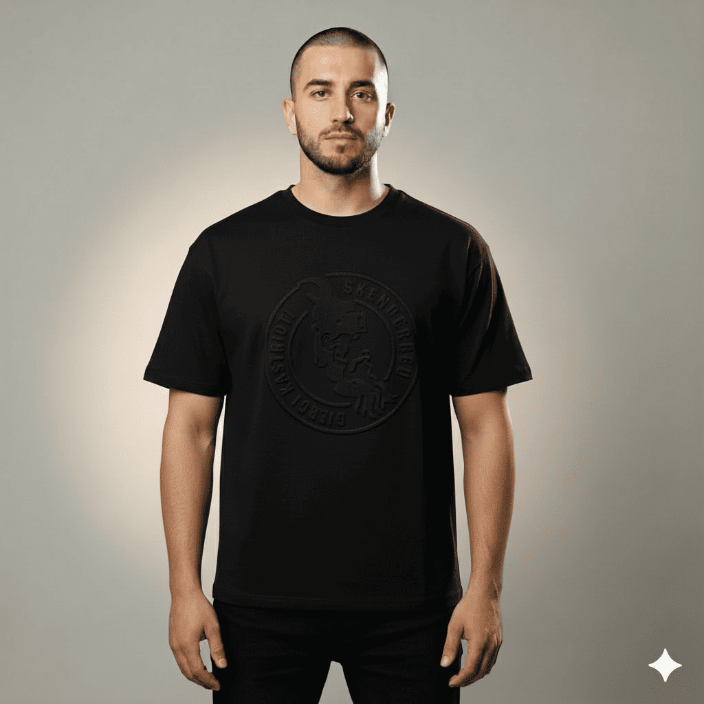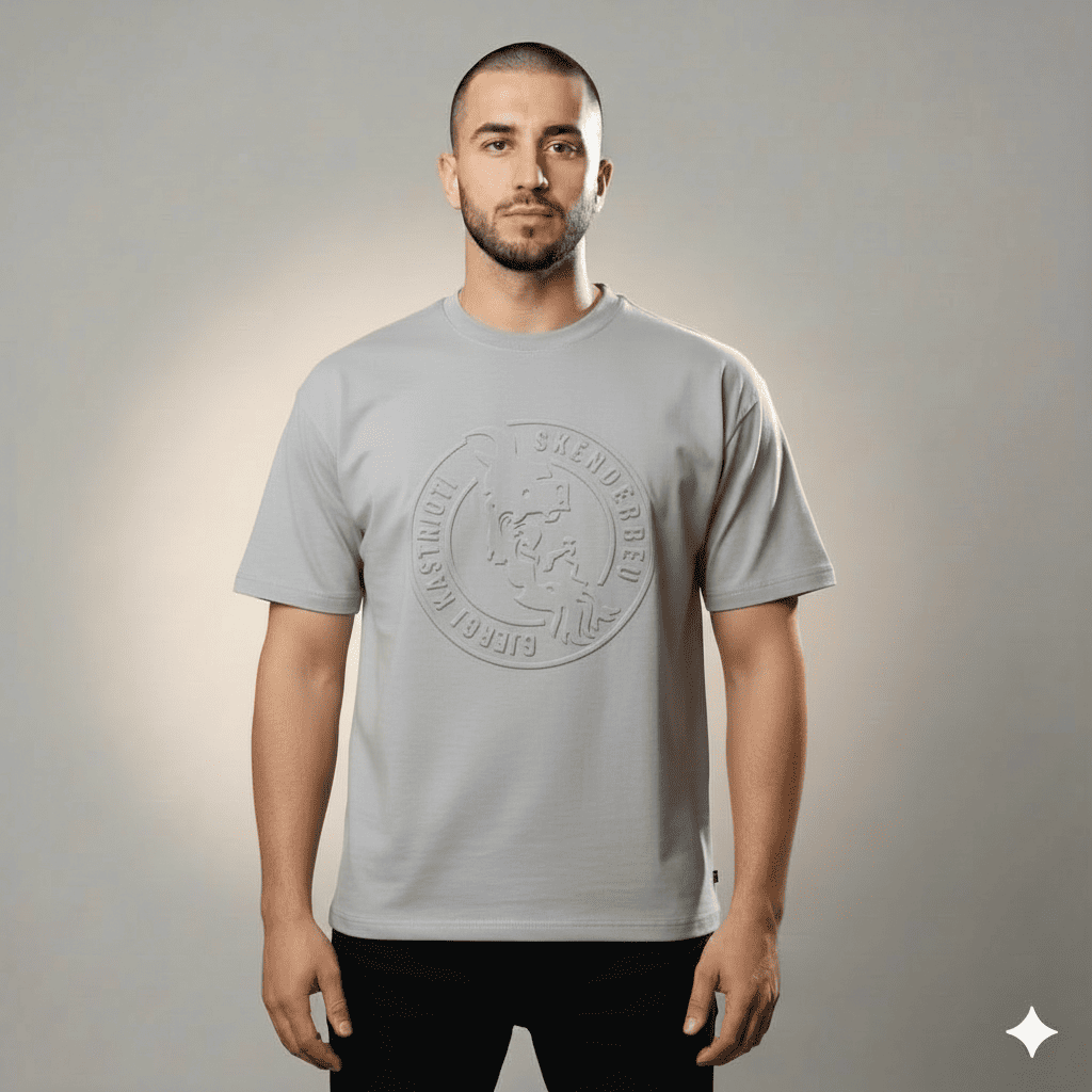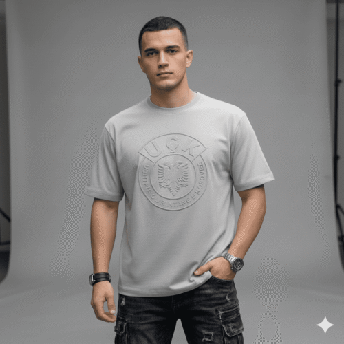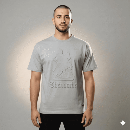 I frymëzuar nga figura historike e Gjergj Kastrioti Skënderbeu, ky dizajn sjell një simbol të identitetit shqiptar në një formë moderne dhe të rafinuar. Detajet e realizuara me stil të pastër dhe elegant i japin bluzës një karakter të veçantë, që flet pa pasur nevojë për fjalë.